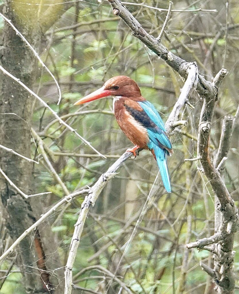 White-fronted Kingfisher: Keoladeo National Park, Bharatpur, Rajasthan, India, March 2023 — Though we had already seen the White-fronted Kingfisher at Saltanpur, these were my first really good shots, and between them they show off the bird to good advantage. The White-fronted is the most common Kingfisher, at least in Rajasthan, at least on our journeys. We saw them everywhere, and in some unlikely places as well. It is big. It is bold. It is highly visible. Sony Rx10iv at 600mm equivalent. Program mode with my custom birds and wildlife modifications. Processed in Pixelmator Pro and Apple Photos. ISO 1600 @ f4 @ 1/500th. Plus 1.3EV.