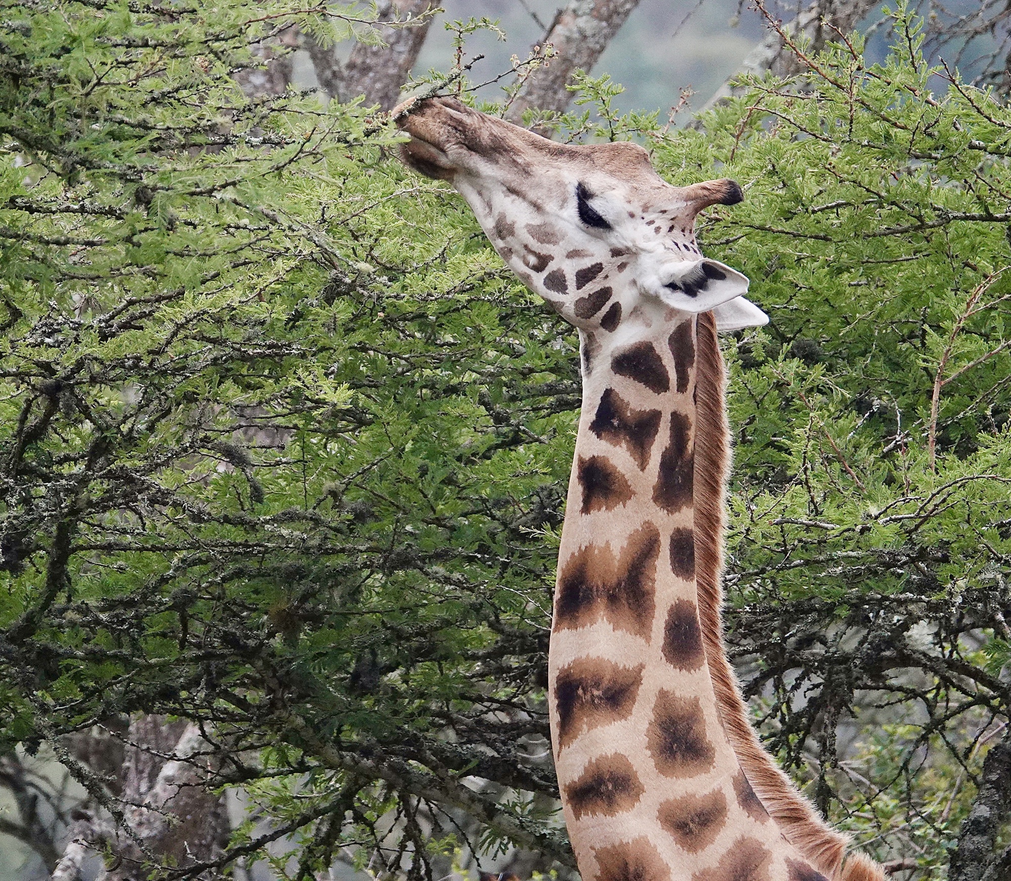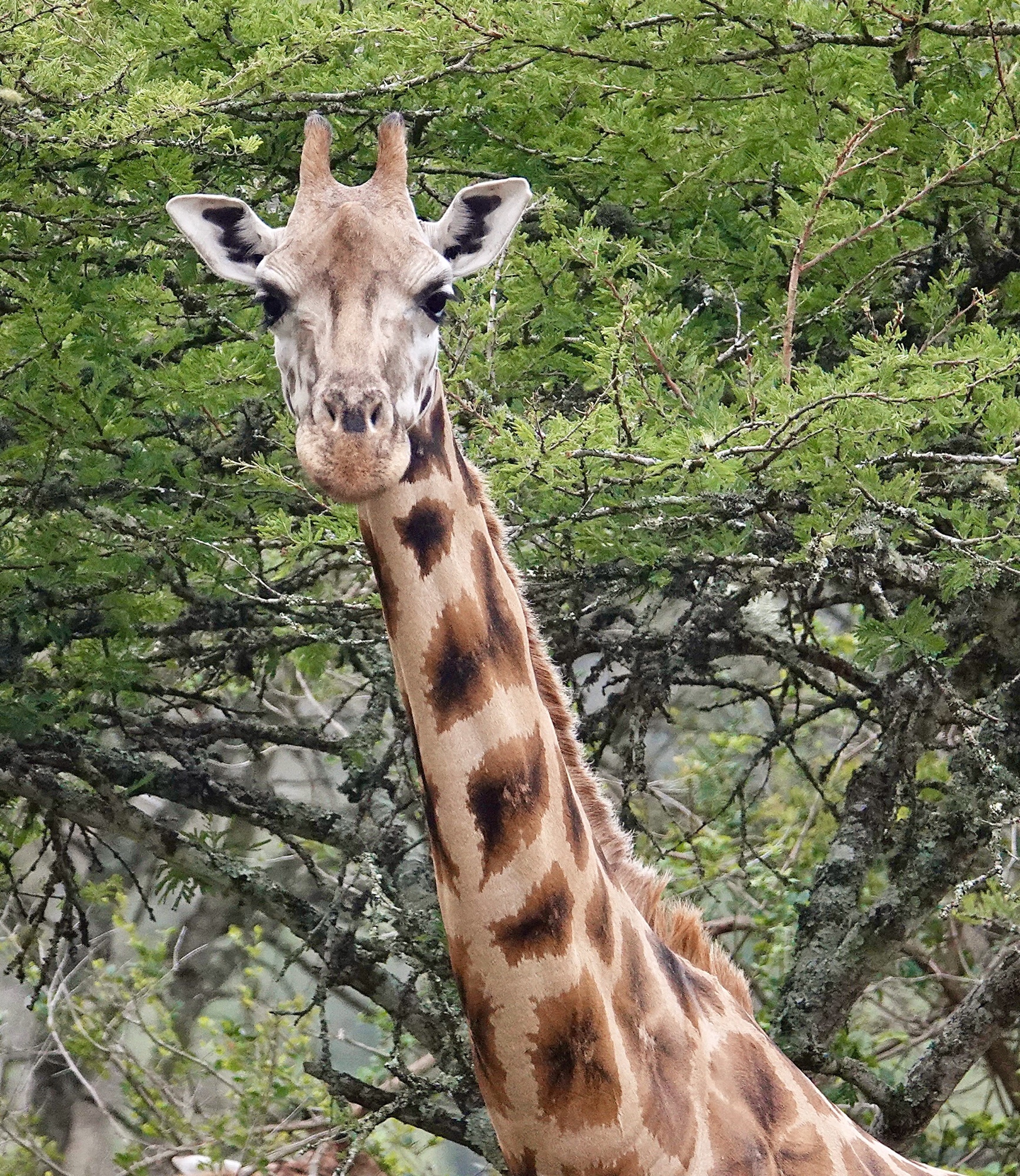 Nubian Giraffe: Lake Mburo National Park, Uganda, August 2022 — Still with the small tower of Giraffes we encountered on our walking safari with an armed ranger at Lake Mburo. A few portraits. You can see how delicately they strip the new growth leaves from the tops of the acacia trees…pulling them off without catching the thorns. Their browsing is what gives the acacias of Africa their characteristic shape. Wonderful creatures! Sony Rx10iv at 600mm equivalent. Program mode with my custom birds and wildlife modifications. Processed in Pixelmator Pro and Apple Photos. ISO 1000 @ f4 @ 1/500th.