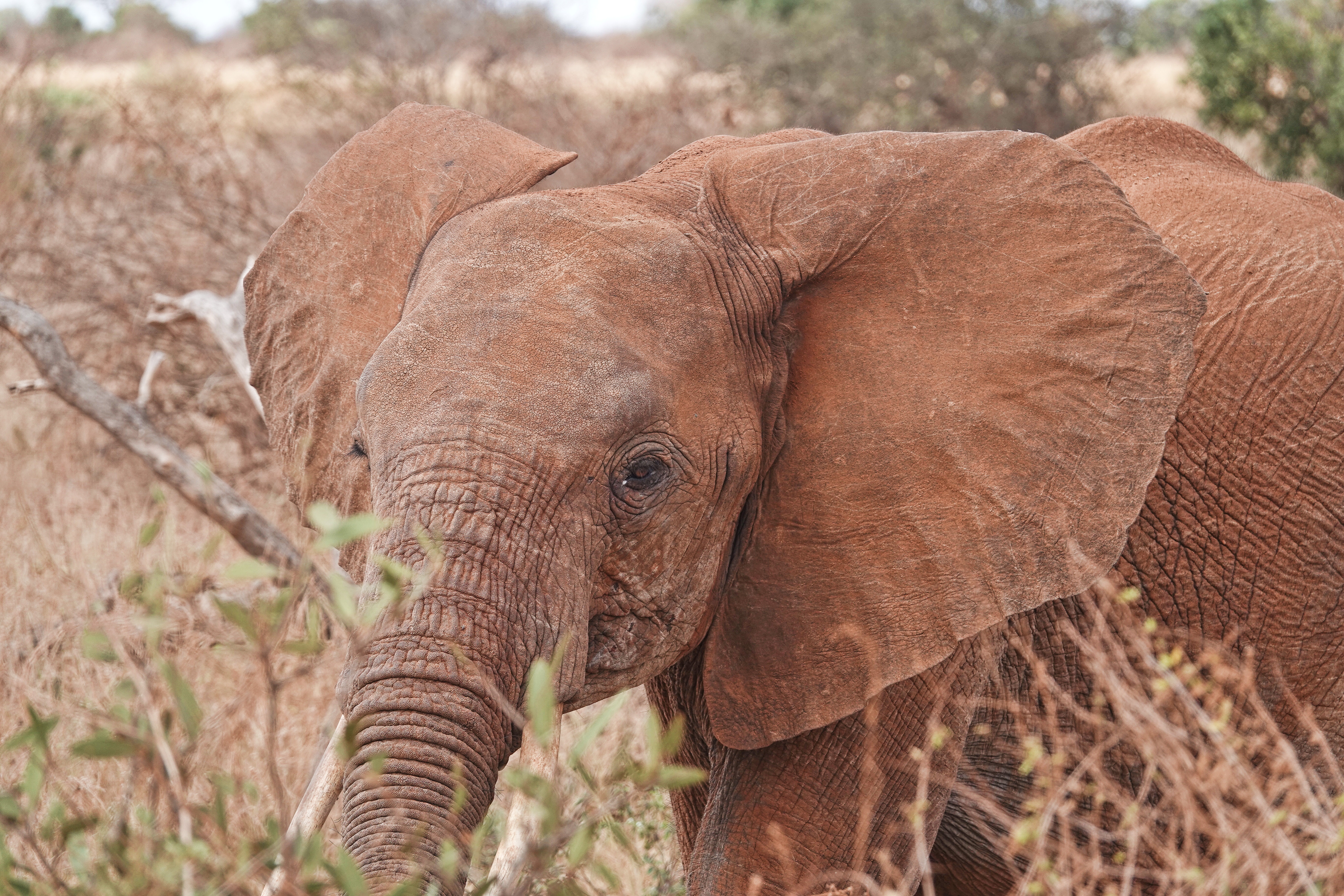 Tsavo East National Park in Kenya is famous for its “red elephants” and big tuskers. The elephants are not red of course, but the soil is full of red clay, and when the elephants are freshly “dusted”, and in the right light, they certainly look red. Elephants dust or mud themselves to protect their skin from the sun and insects. All elephants do it. It is just that the soil of Tsavo East turns them red when they do. The big tusks of Tsavo East are more of a mystery. Elephants with big tusks are increasingly rare in other areas of Kenya and Tanzania, but many remain at Tsavo East. No one knows exactly why. Sony RX10iv at 90mm, 350mm and 600mm. Program mode. Processed in Polarr. Note the corrugated tongue on the close-up. 🙂
