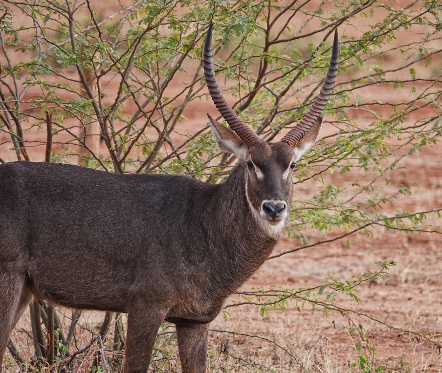 The Common Waterbuck is another of the very common antelope species in Kenya…especially in Tsavo East and West National Parks. Bucks are strongly built with impressive horns and females and young are on the cute side…so what is not to like? At Voi Safari Lodge they were often on inside of the fence with us, and in Tsavo East we saw many family groups and lone bucks. Sony RX10iv at mostly 600mm equivalent. Program mode. Processed in Polarr. (Touch or click any image to view at full size.)