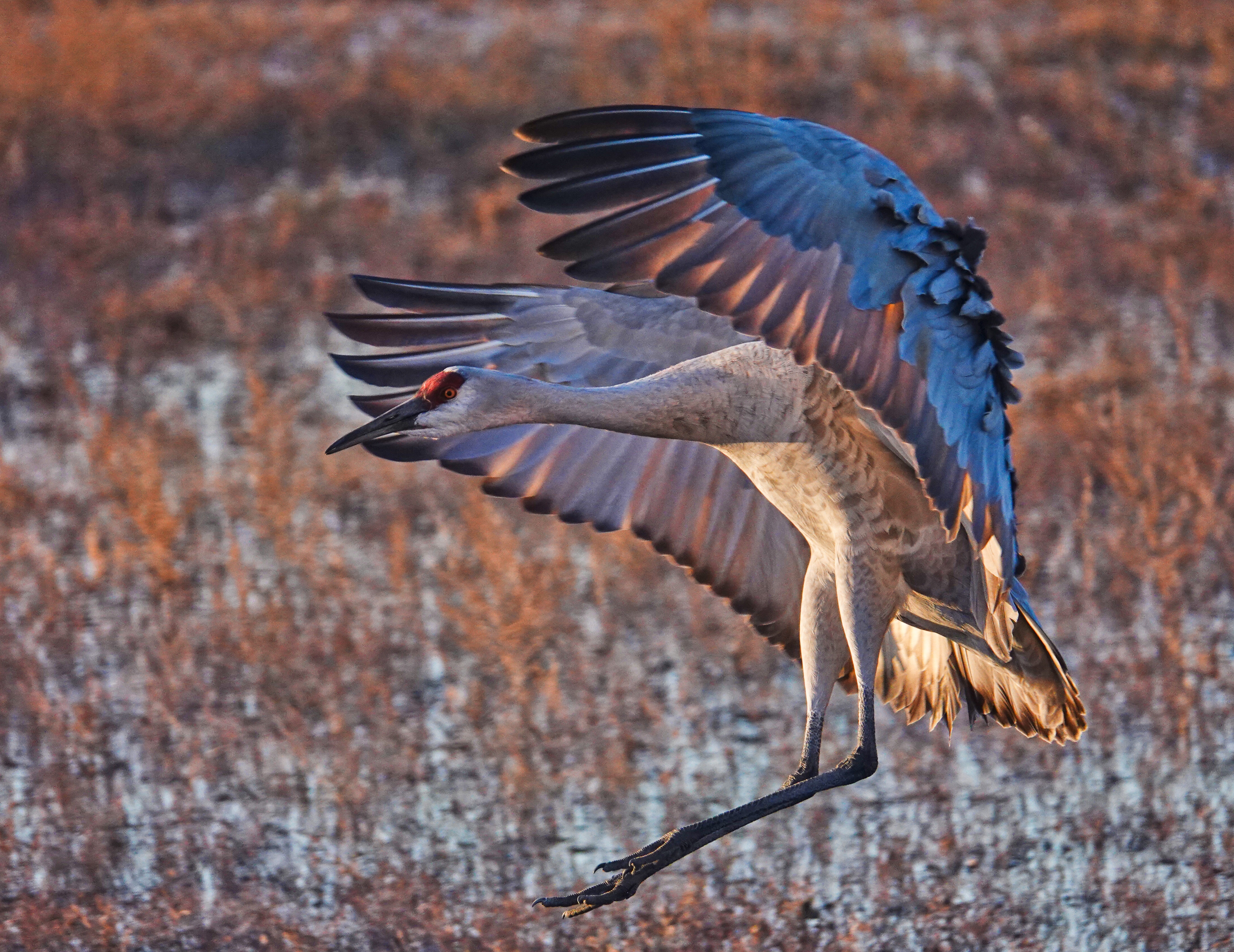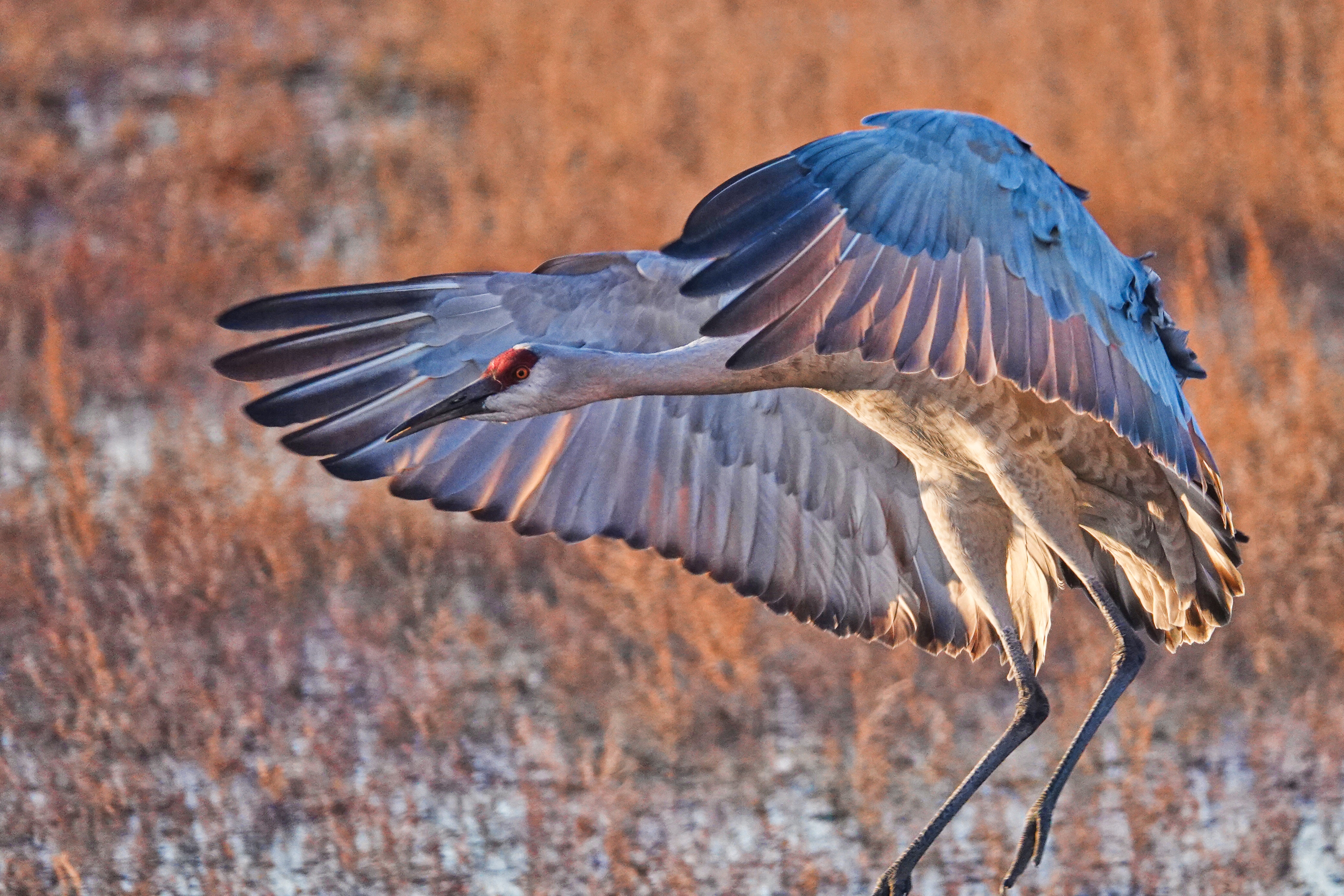 Some sunsets at Bosque del Apache National Wildlife Refuge in Socorro New Mexico, with the Sandhill Cranes coming in to roost in shallow water for the night, the light is just unspeakably beautiful. This crane was coming in toward the setting sun, and what it does to the wings is amazing. Sony RX10iv at 600mm equivalent. My custom Birds in Flight adaptation of Program mode. Processed in Polarr.